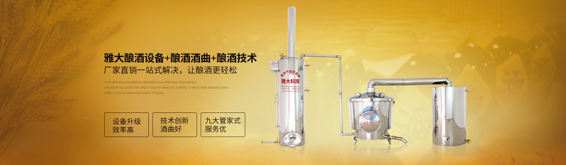 永州市雅大科技實業有限公司成立于1999年,位于湖南省南部國家歷史文化名城—永州市,是一家集釀酒技術研究、釀酒設備、釀酒酒曲生產銷售于一體的國家高新技術企業。擁有標準房、科技培訓樓13500m7,公司連續十年被省、市江商局評為重合同守信用單位,榮獲201 7年中國釀酒設備行業新標桿企業獎。可提供釀酒項目整體解決方案,包括釀酒項目選擇、酒廠規劃設計、釀酒技術培訓,酒類產品設計、包裝瓶(盒)設計、酒品營銷策劃、協助辦理資質、編制可行性報告等方面。